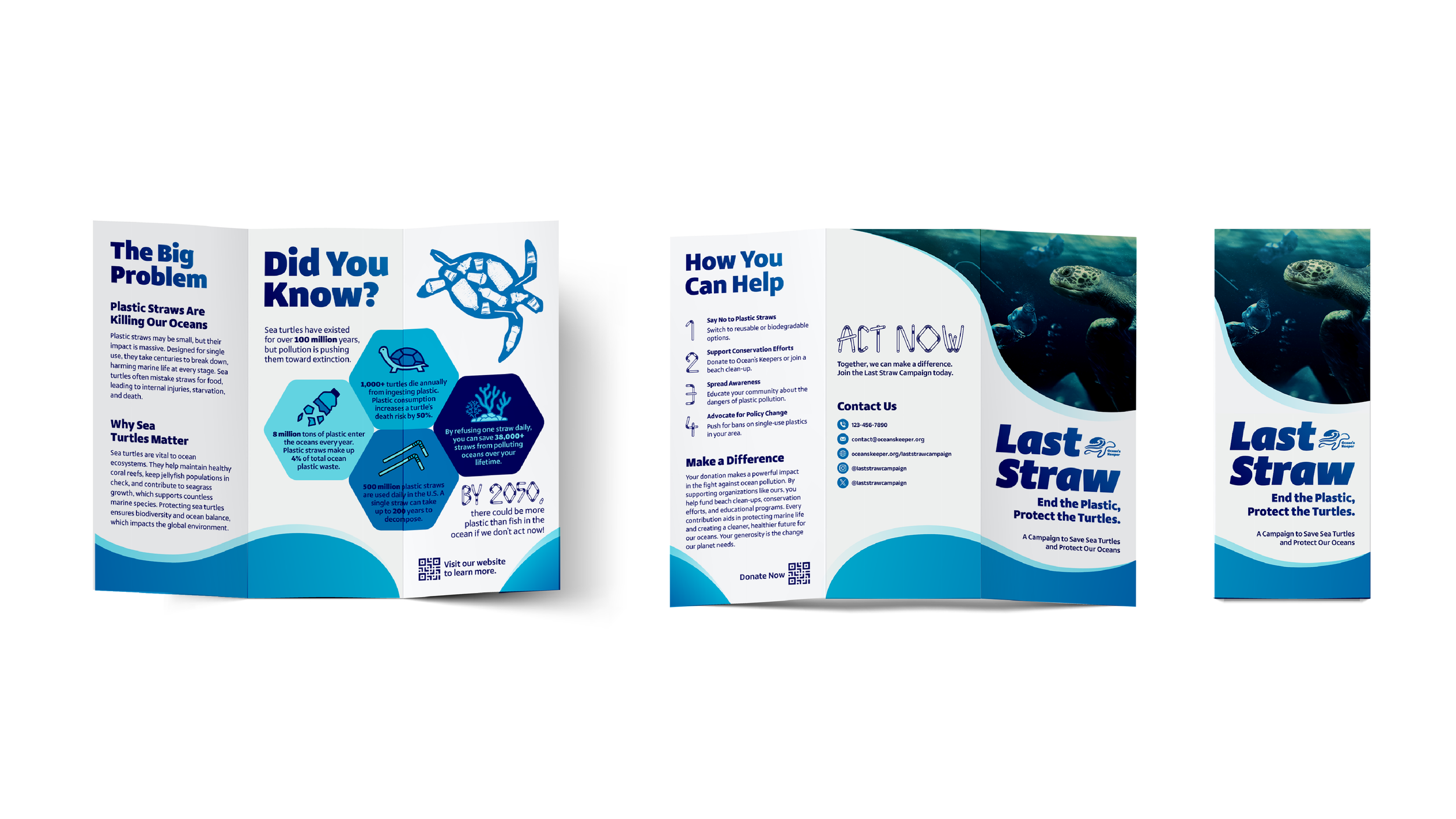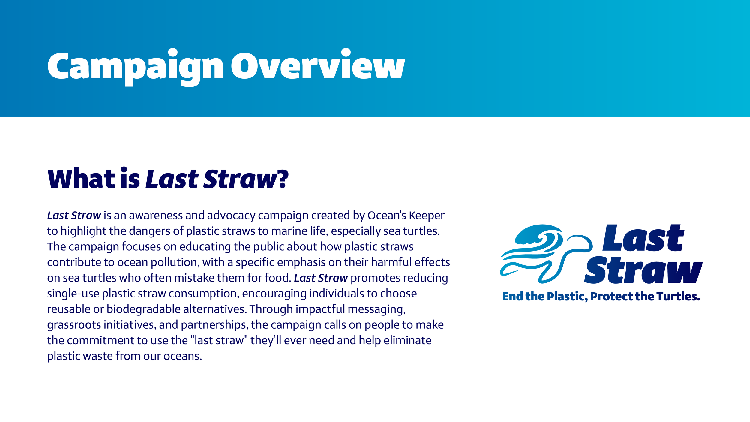 A conservation initiative raising awareness of plastic pollution. Focused on eliminating single-use straws, the campaign promotes sustainability through bold visuals and actionable solutions. The design focuses on vibrancy, modernity, clarity and impact.